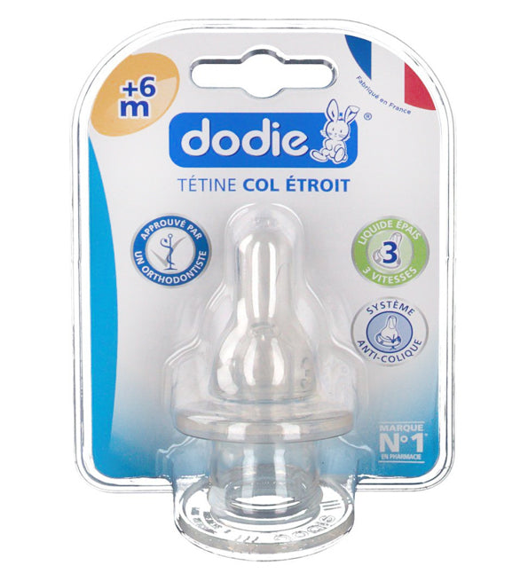 La tétine Dodie col étroit spéciale liquide est adaptée aux bébés en phase de diversification. Sa conception permet un débit fluide pour les liquides plus épais, tout en assurant un confort de succion optimal.