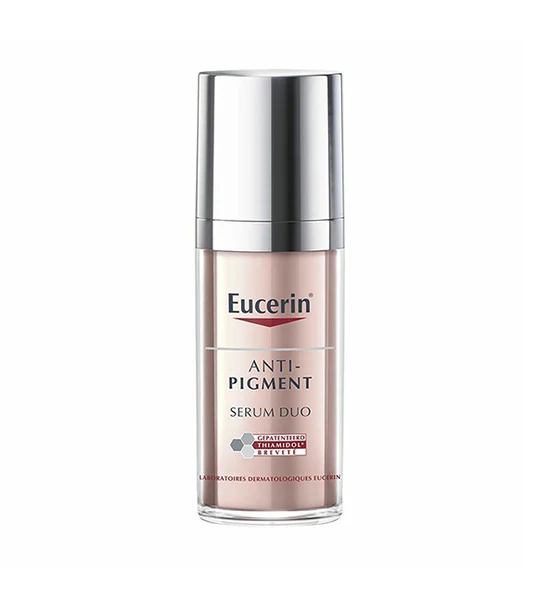 • Eucerin Anti-Pigment Sérum Duo (30 ml) : formulé avec le breveté Thiamidol, il agit directement à la source des taches pigmentaires pour réduire leur apparition et unifier le teint.