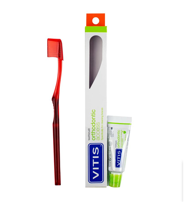 Le pack Vitis Orthodontic est spécialement conçu pour répondre aux besoins des personnes portant un appareil dentaire fixe (bagues, fils, etc.) :